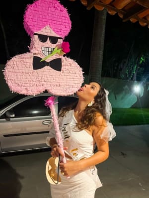 O pacote contempla: Uma pinhata recheada com R$350,00 de produtos e brindes e acompanha venda e bastão para a noiva bater, se divertir e ainda presentear suas amigas.
